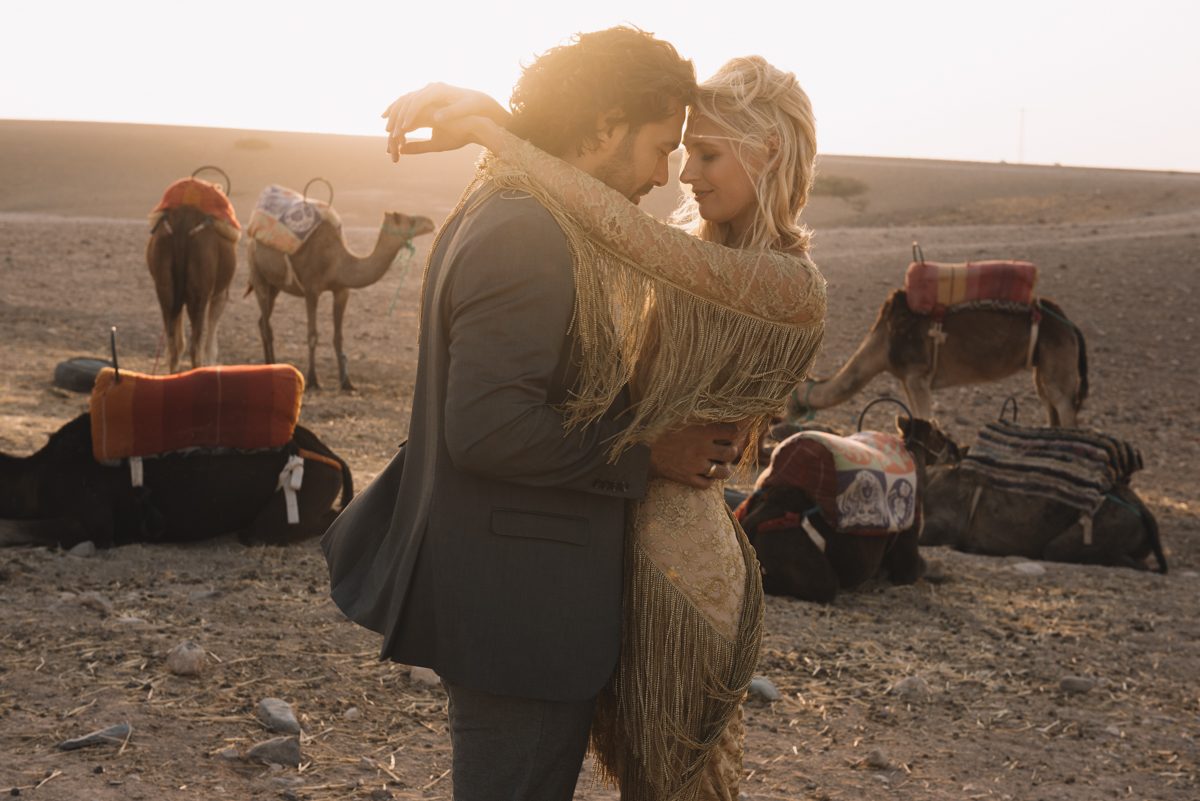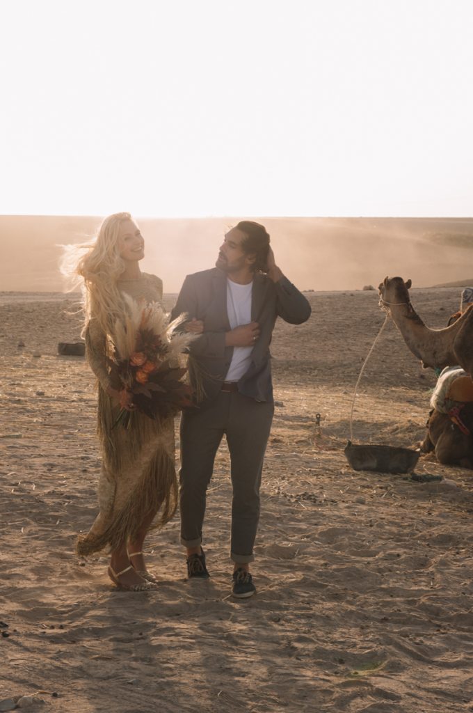 After their heartfelt ceremony, the newlyweds embarked on a desert adventure. They rode camels across the undulating dunes, exploring the vastness of the Agafay, their love growing stronger with each step.