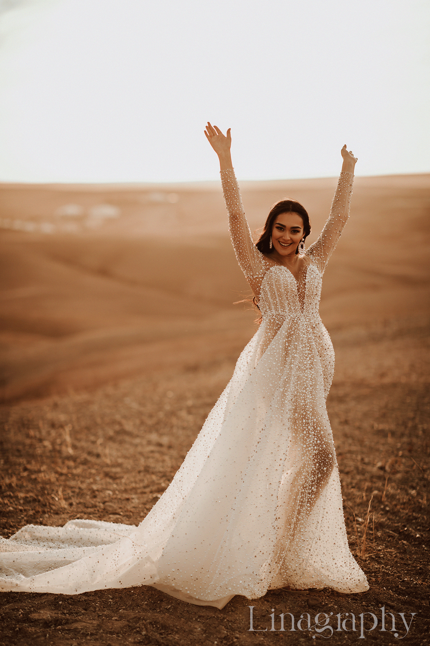Months of planning and anticipation followed. The couples collaborated with local artisans to design exquisite white wedding attire that would stand out amidst the desert’s golden backdrop. The dresses were adorned with intricate lace and embroidered with symbols of Albanian culture, a testament to their roots.